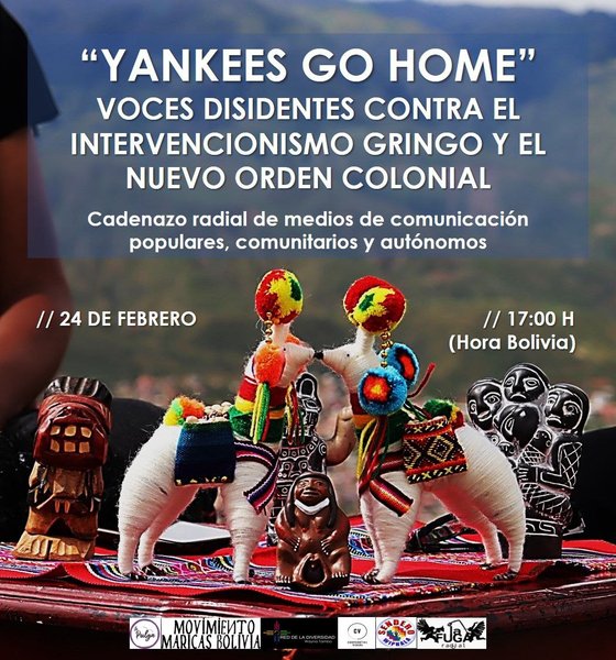Desde diversos medios de comunicación autoconvocados nos hemos organizado para reflexionar, a modo de protesta, la reconfiguración del nuevo orden colonial que lleva a delante el norte global contra los territorios del sur global. Creemos en la potencia política de la contrainformación en un tiempo en que los medios de comunicación tradicionales están aliados a los grupos de poder. Por ello es importante generar este espacio comunicacional como tejido de múltiples territorios que alzan sus voces para gritar “yankees go home”.